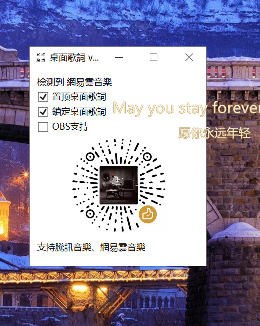 支持騰訊音樂、網易雲音樂桌面歌詞置頂和鎖定。